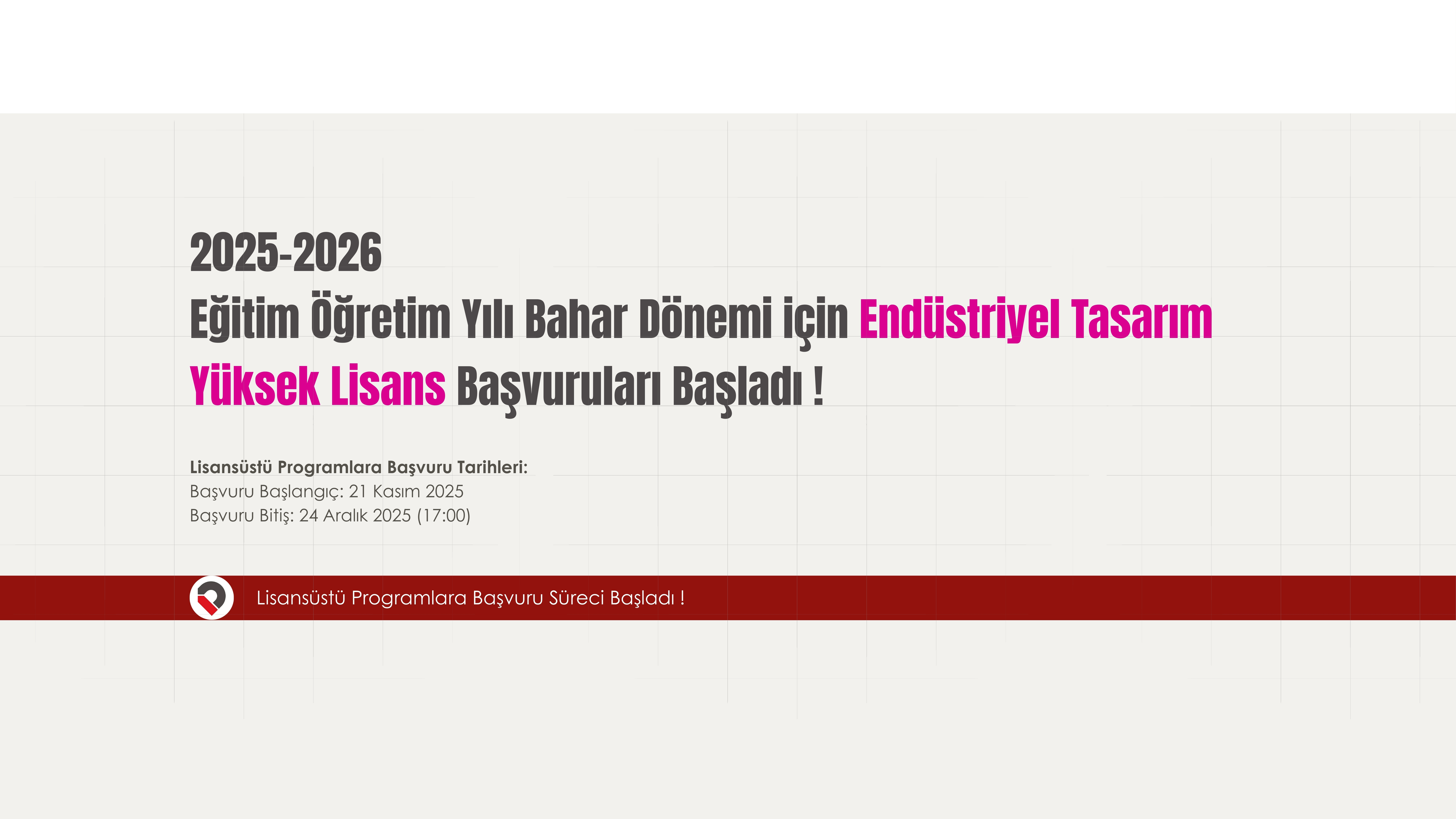 2025-2026 Eğitim-Öğretim Yılı Bahar Yarıyılı için Endüstriyel Tasarım Yüksek Lisans Başvuruları Başladı!