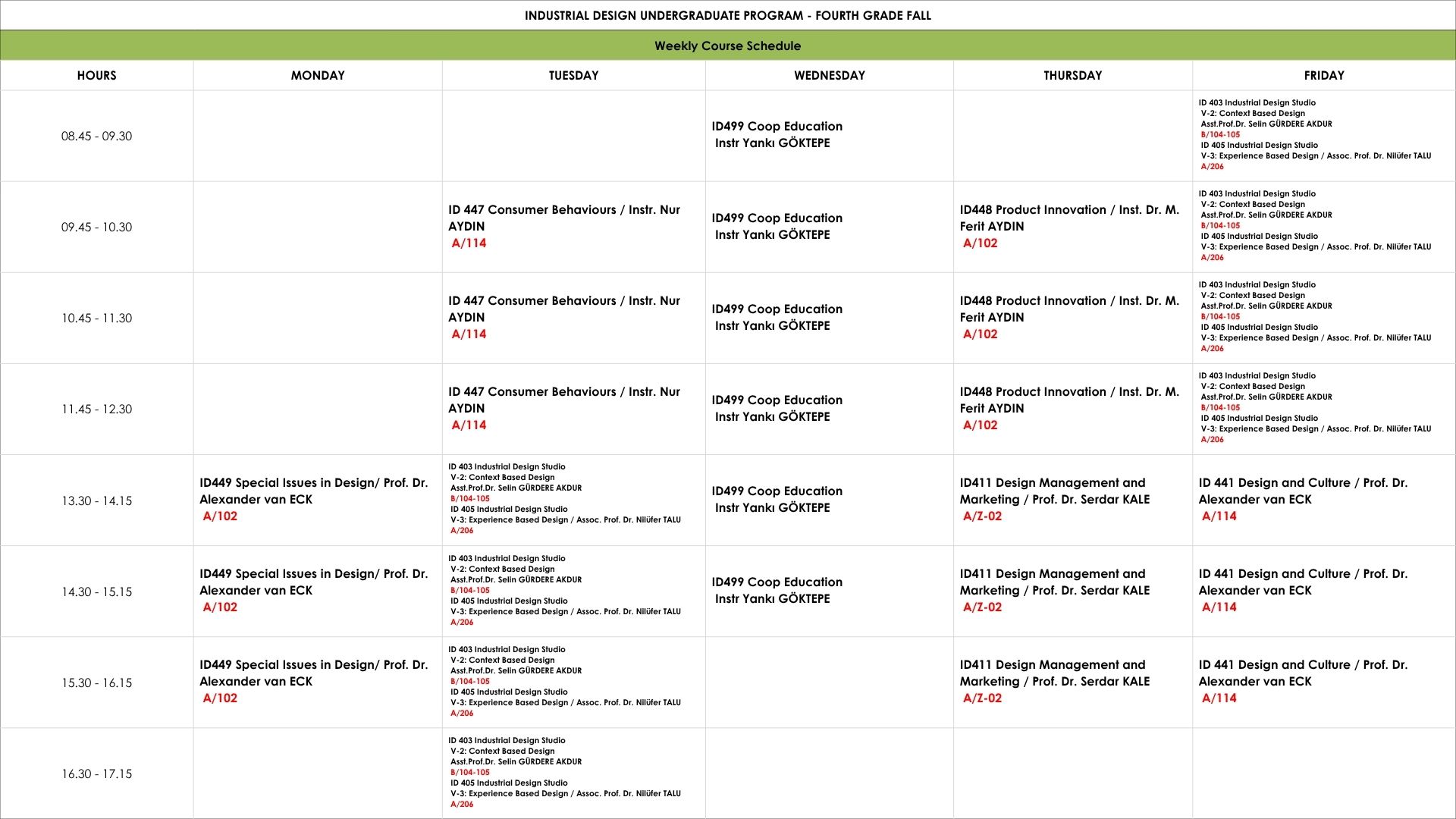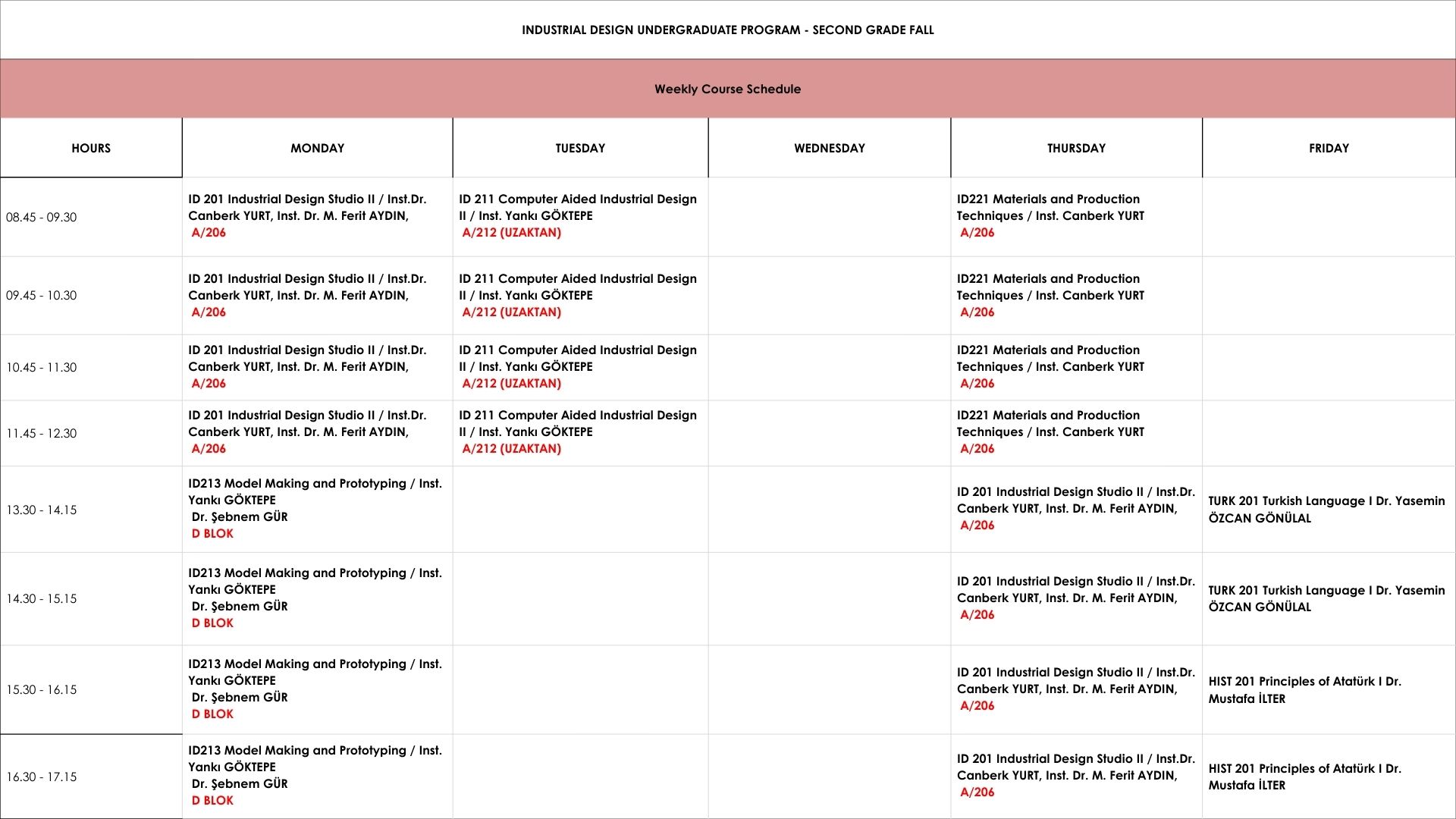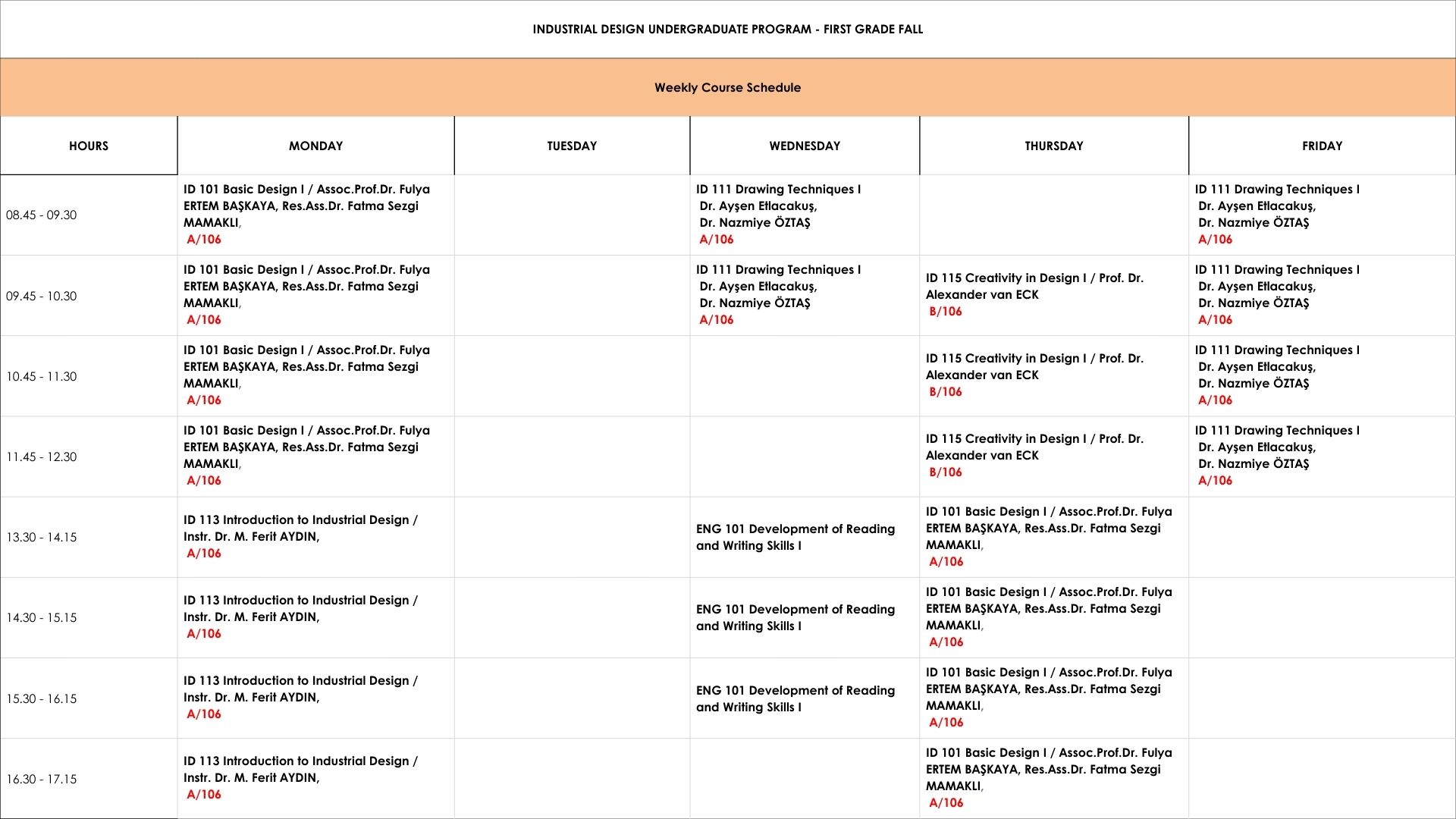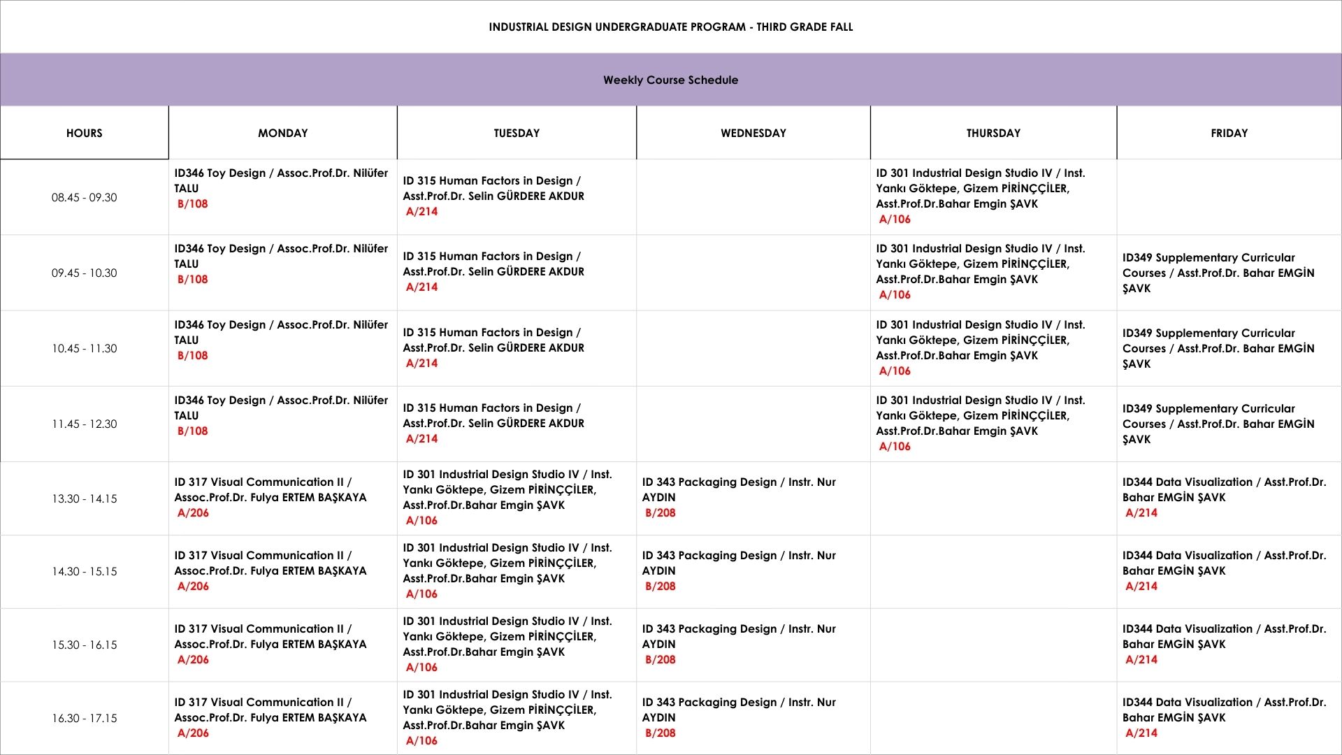 Undergraduate Weekly Schedule Weekly Schedule of the Undergraduate Courses in Fall Semester 2025 – 2026 First Grade Second Grade Third Grade Fourth Grade